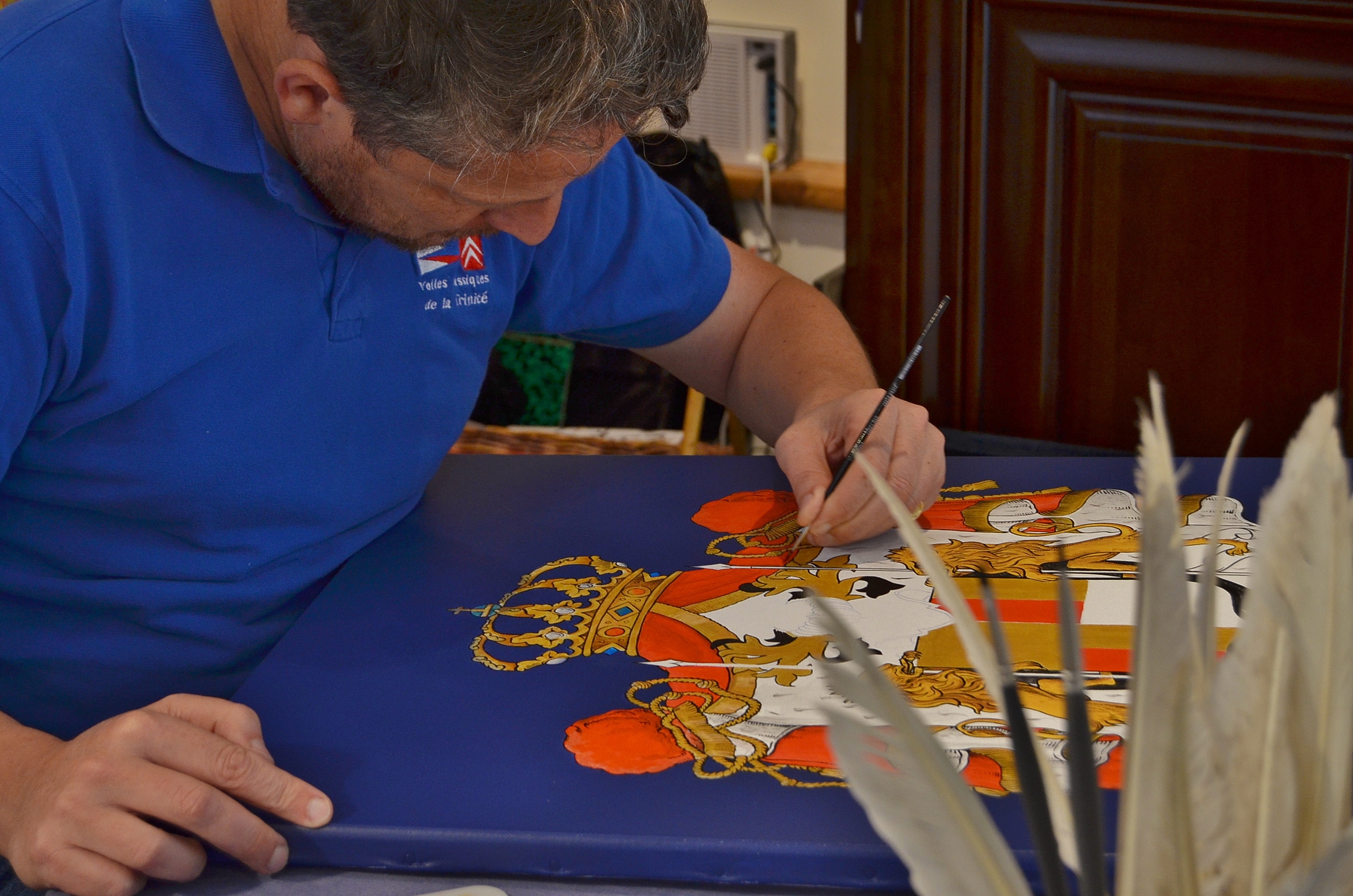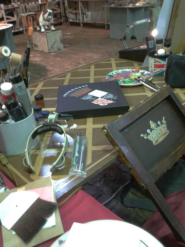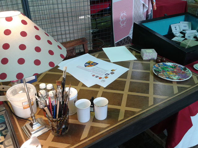 J’expose en salons de métiers d’arts, pour montrer le savoir faire que j’ai appris à l’école des Beaux-Arts, et que j’emploie depuis tant d’années, ainsi que les techniques que j’ai pu apprendre depuis : feuille d’or, or en coquille, tempera à l’oeuf, …