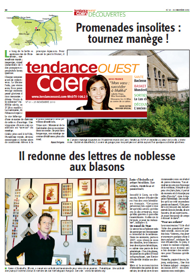 — Presse & TV La presse en parle … salons, expositions, articles de presse …. travaux en résidence à Fontaine-Henry 2013 élimmsion « météo à la carte le 15 mars 2024 Automobile Club de France Les aristos en Europe … dans le journal lepays d’auge en mars 2015..