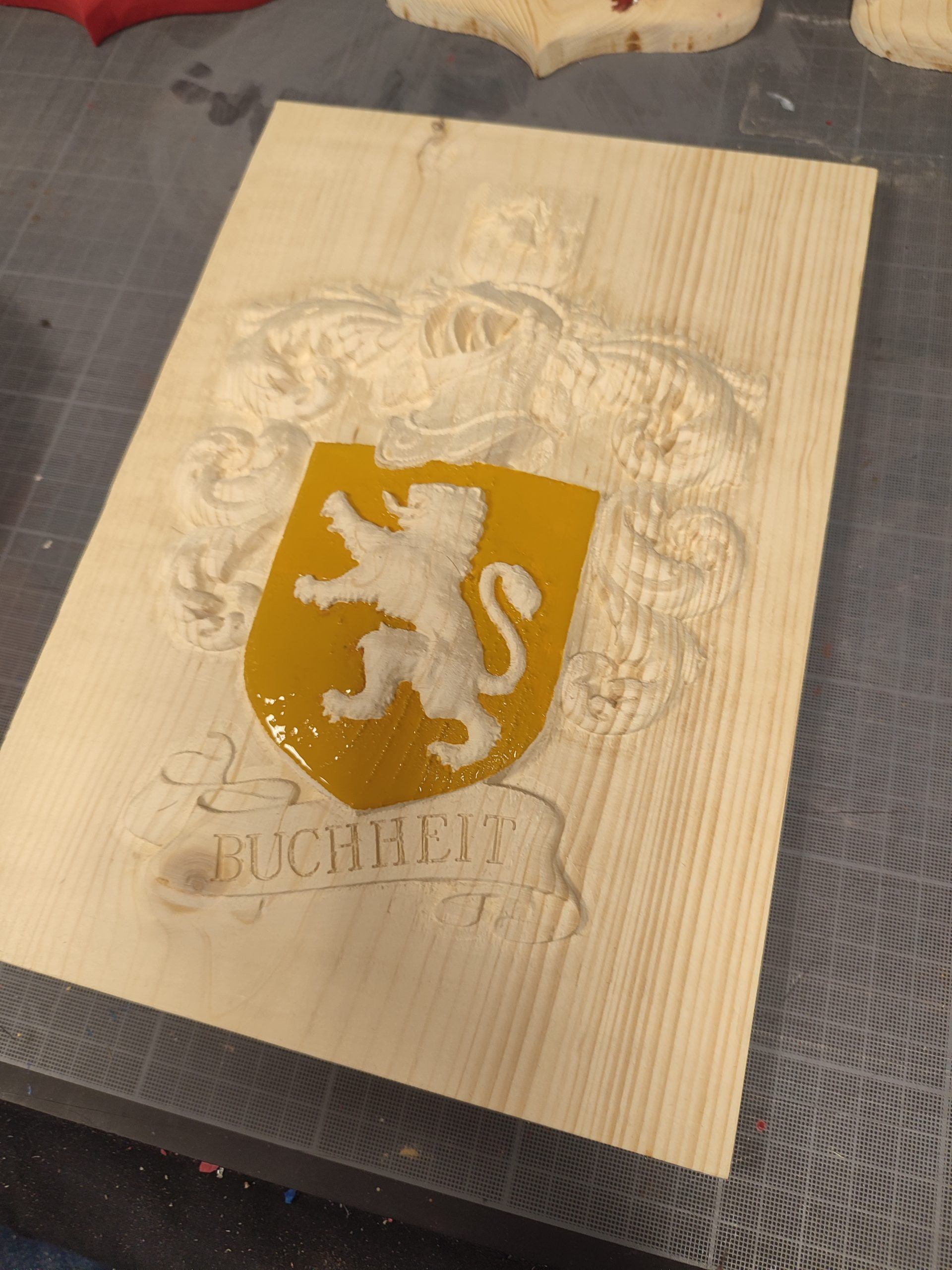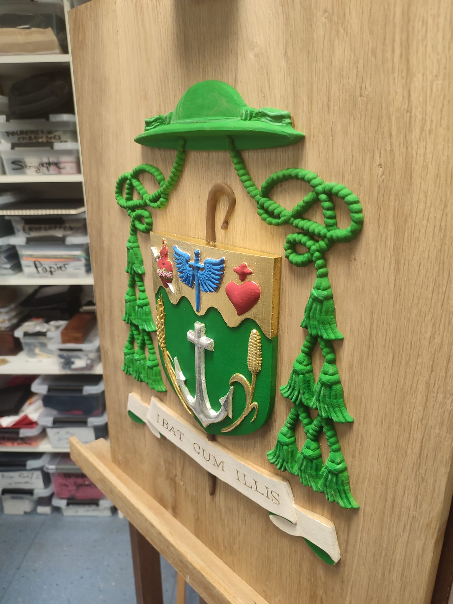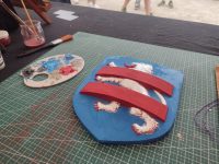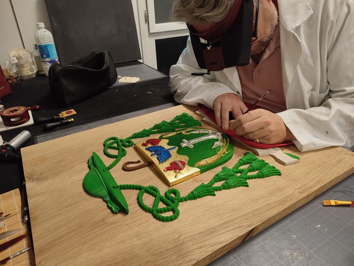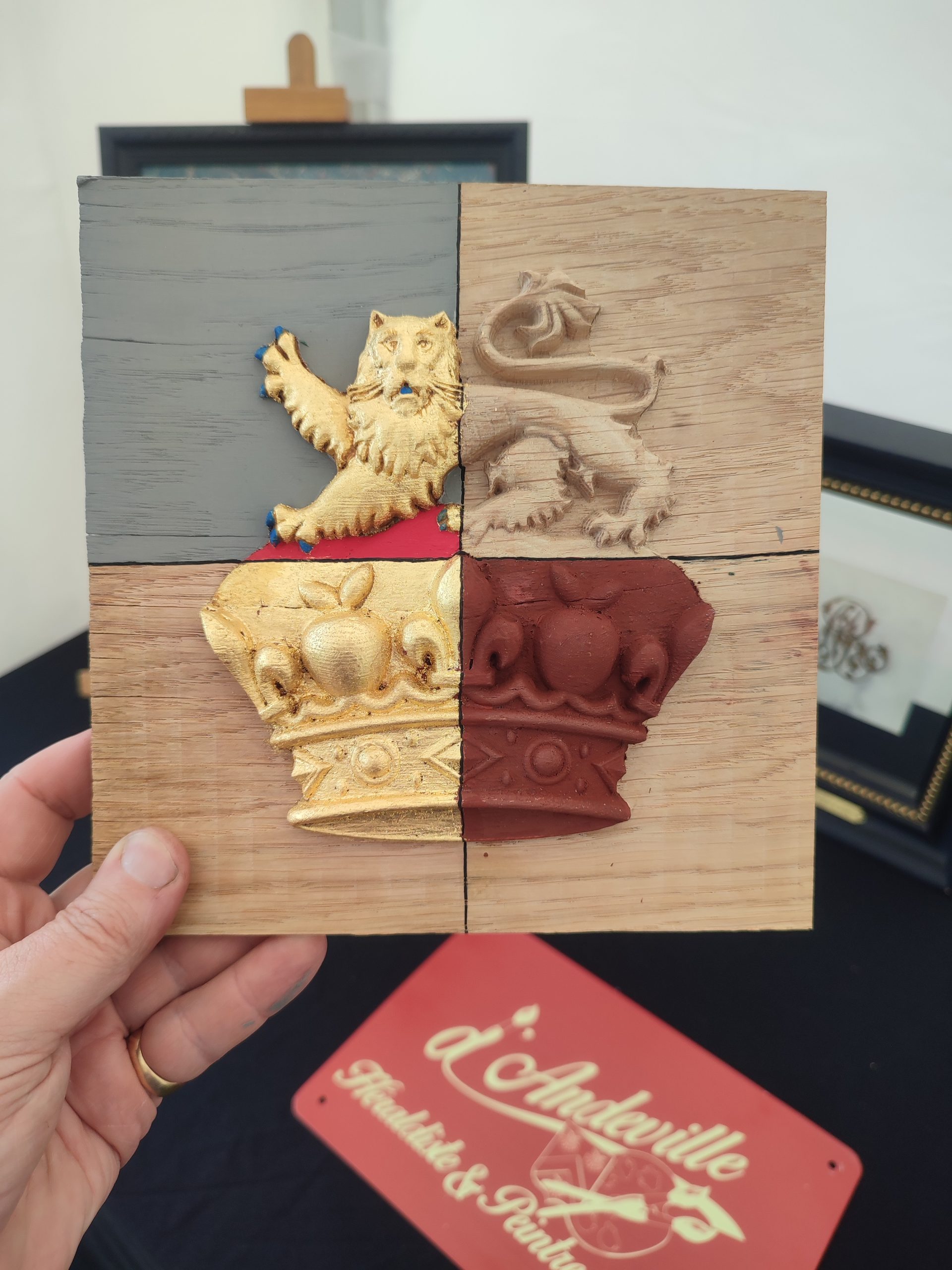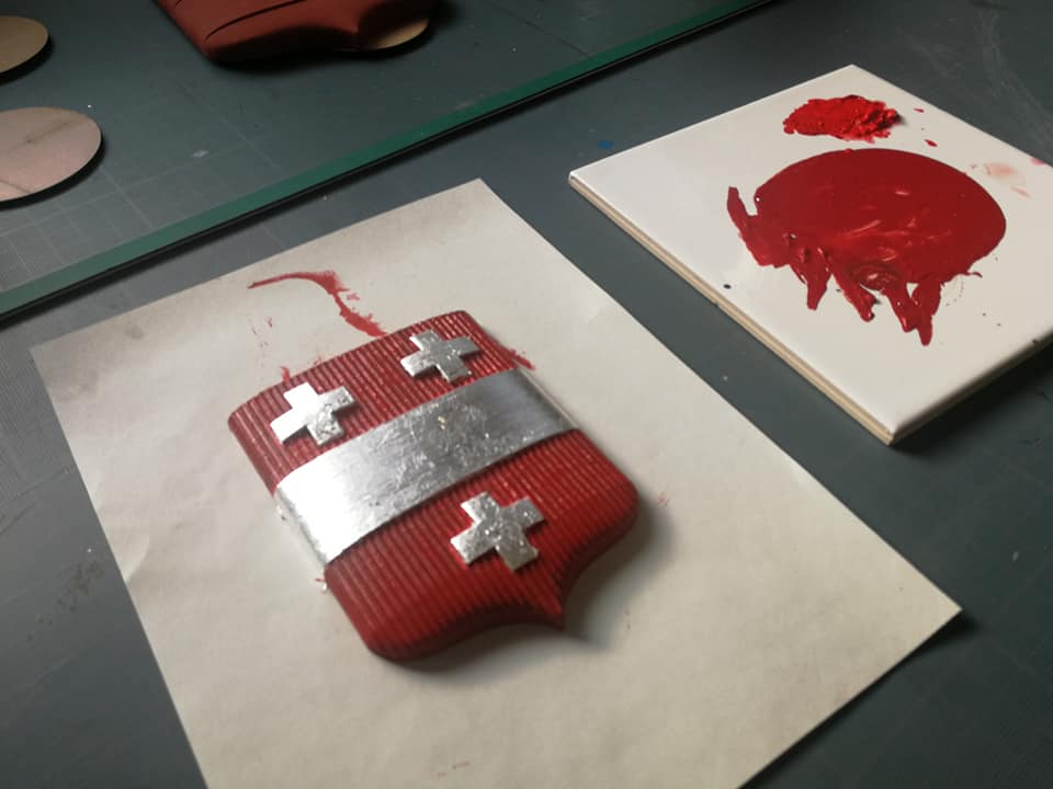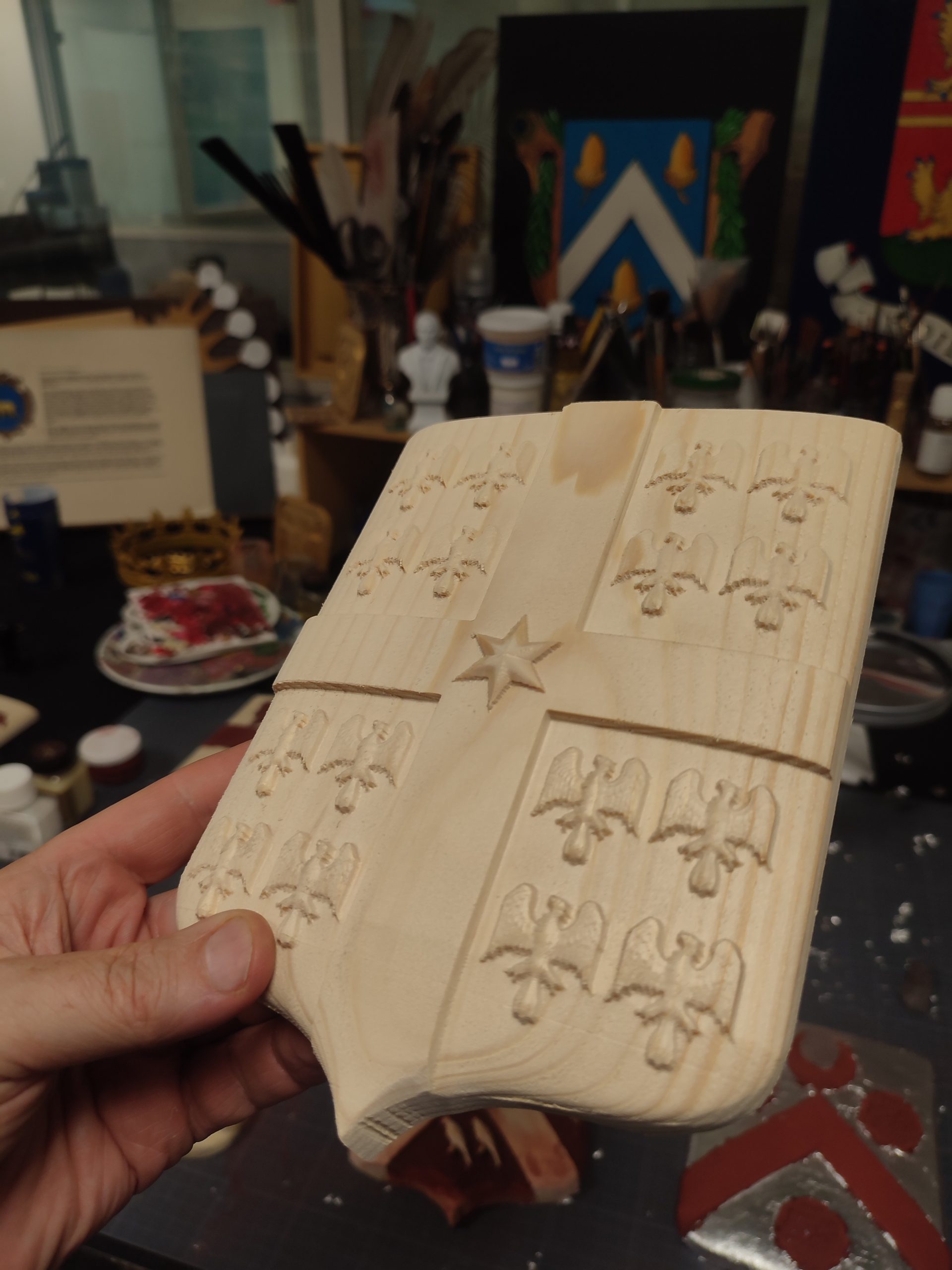 écu en pin avant mise en couleur