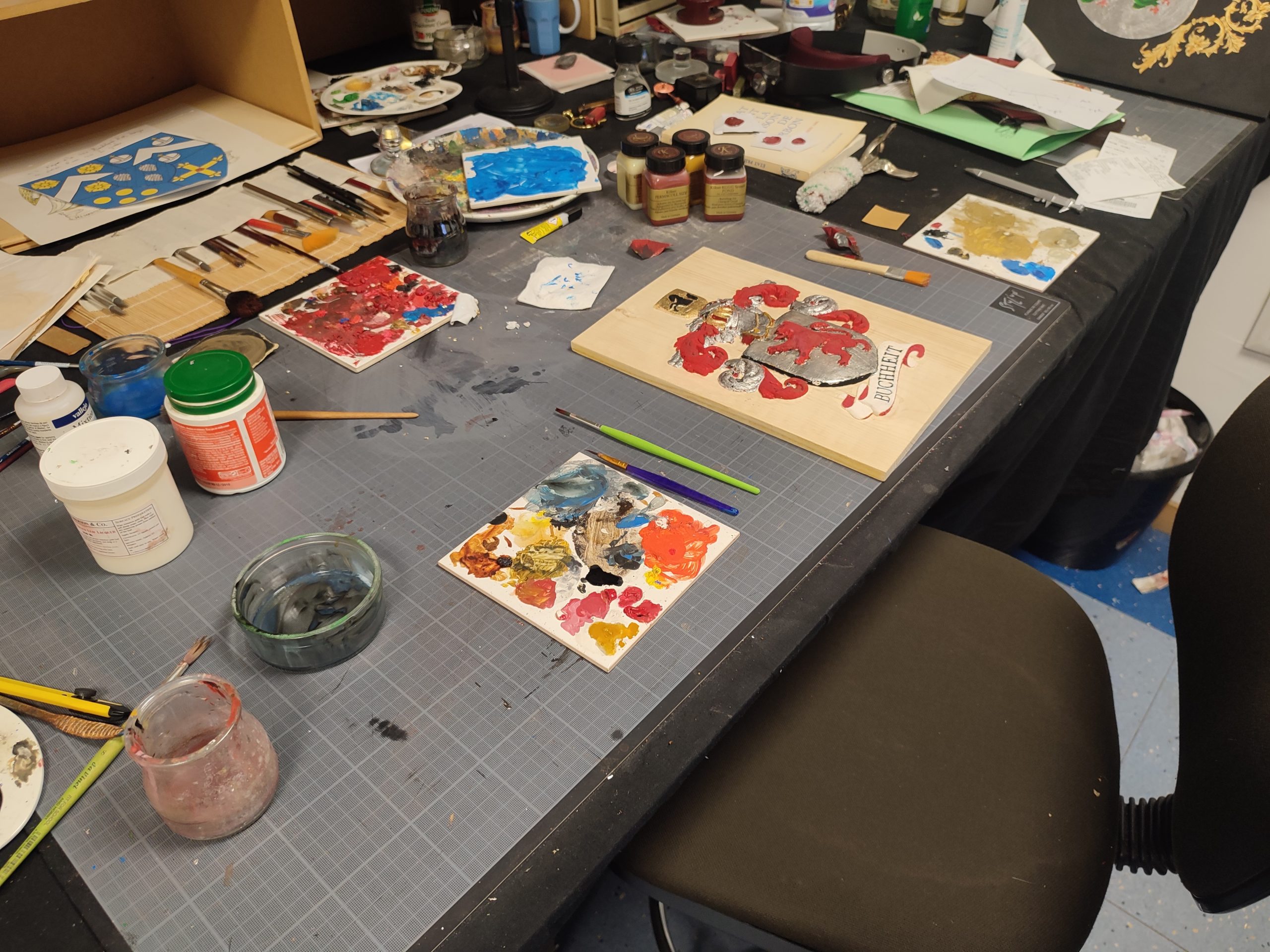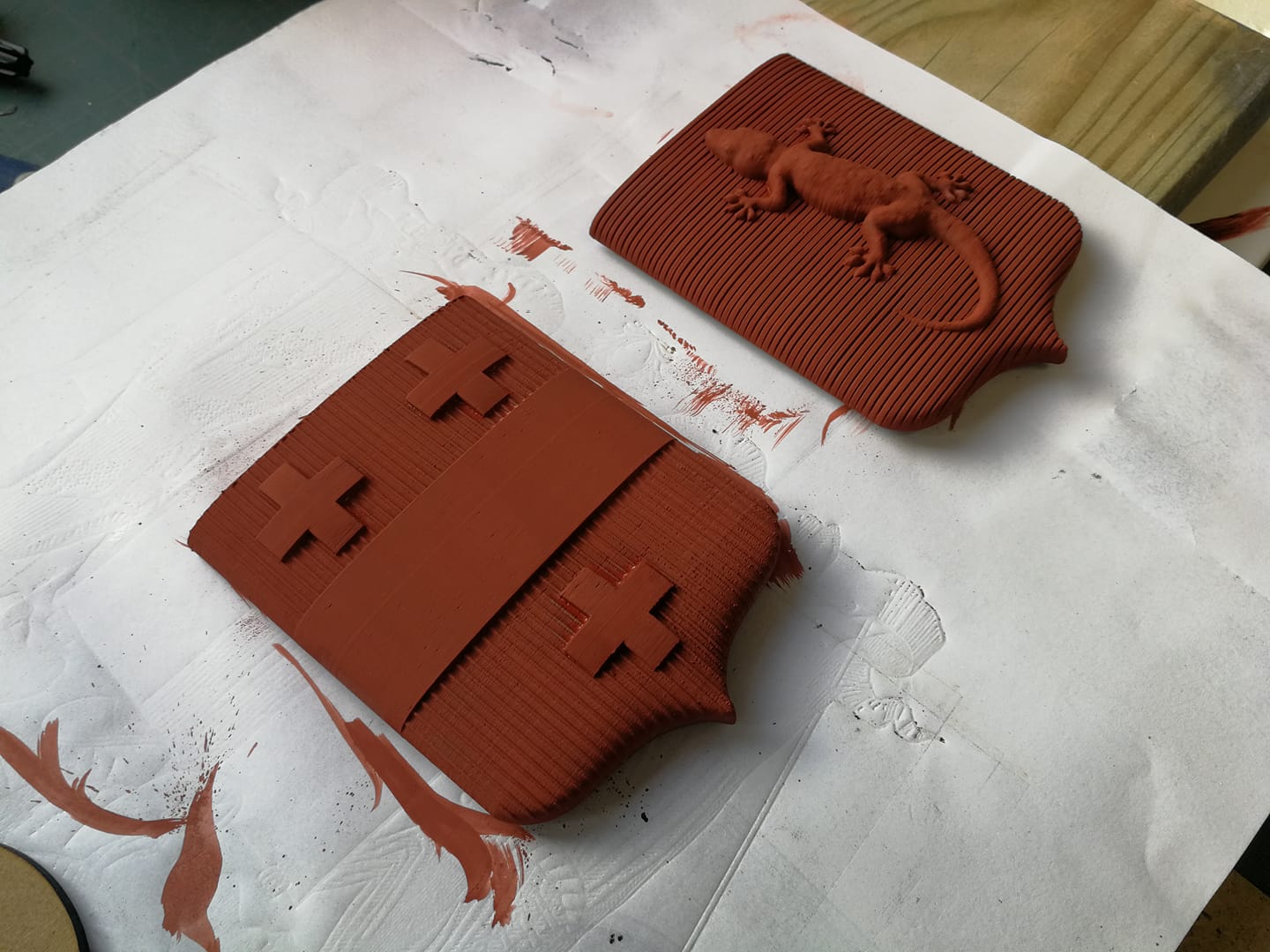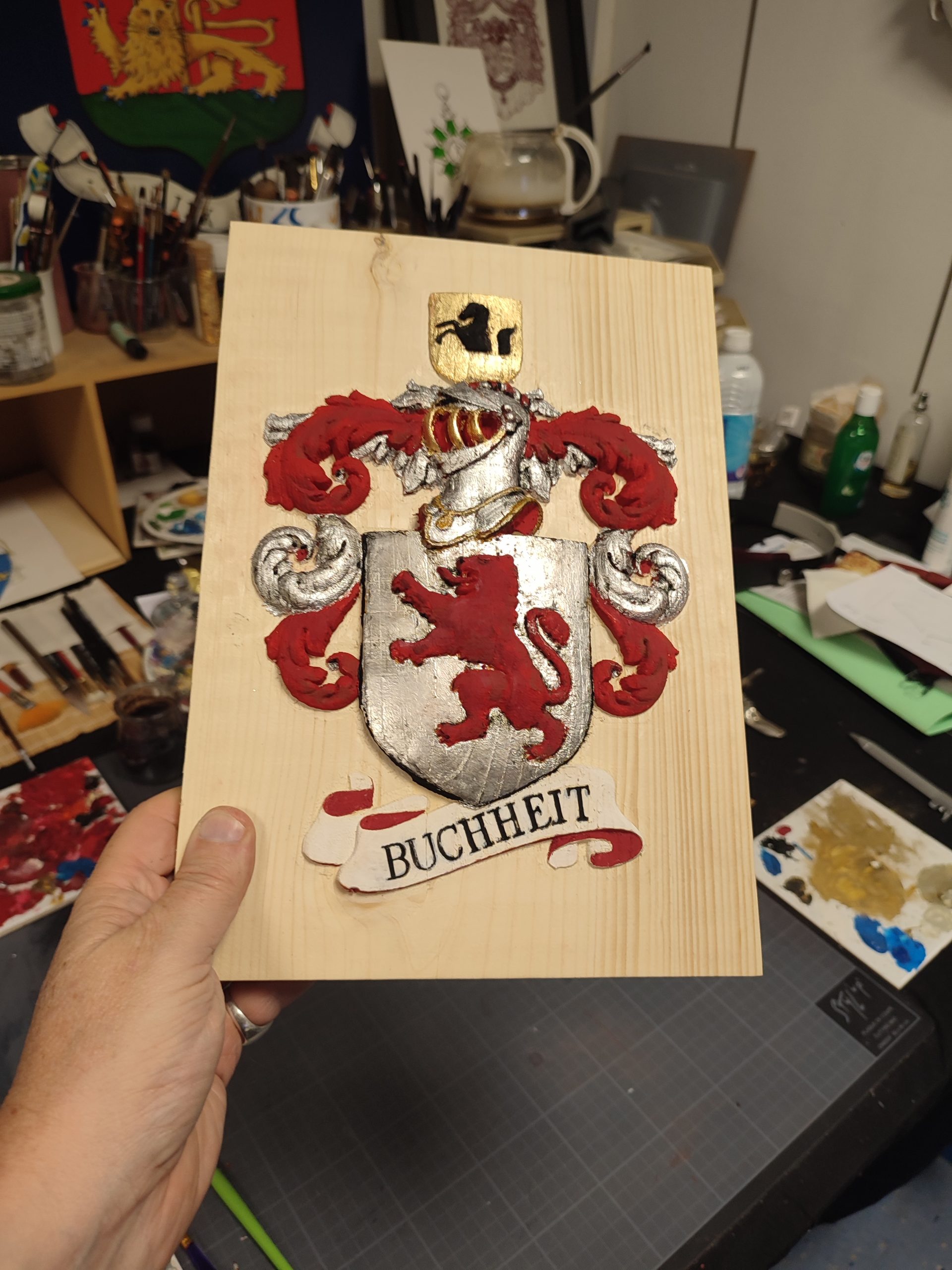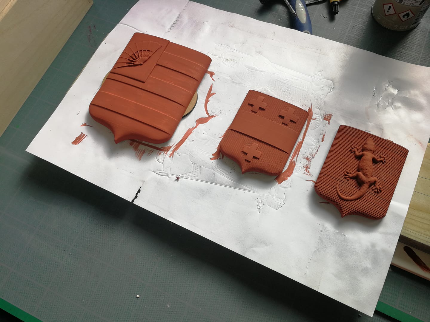 écu en pin avant mise en couleur