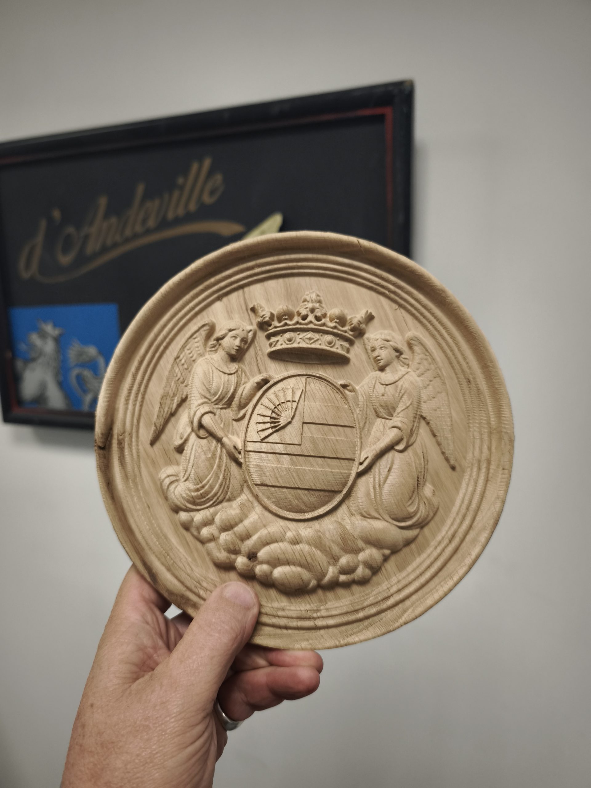 écu en chêne avant mise en couleur
