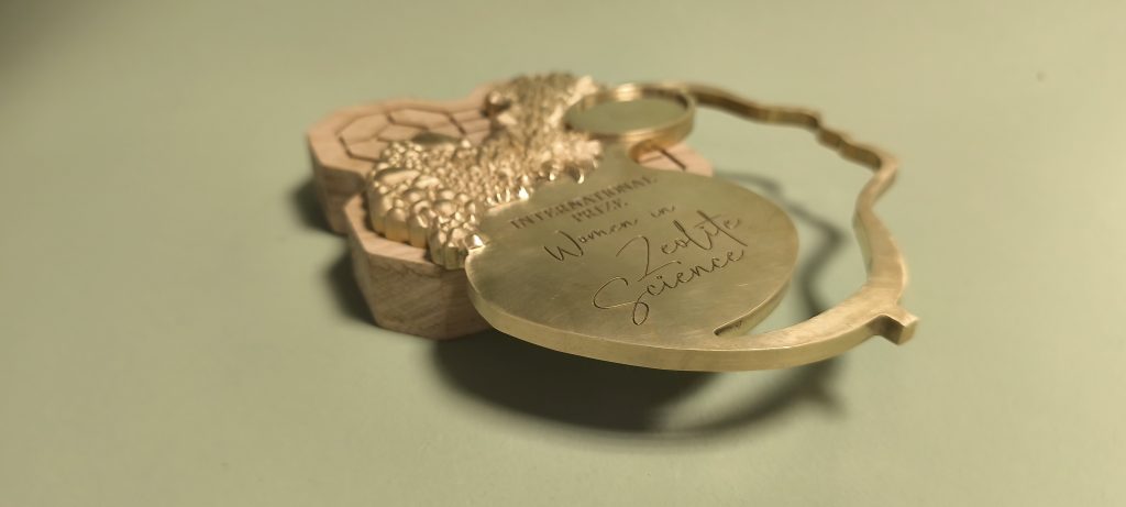 Ci-dessus, un trophée créé par l’intermédiaire du CNRS de Caen, pour être remis en juillet 2025 en Chine lors du 21eme congrès international de la science de la Zéolite, organisé par l’université de Jilin en Chine