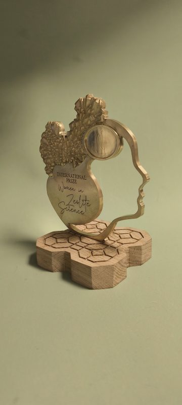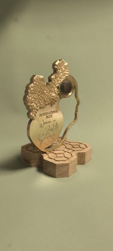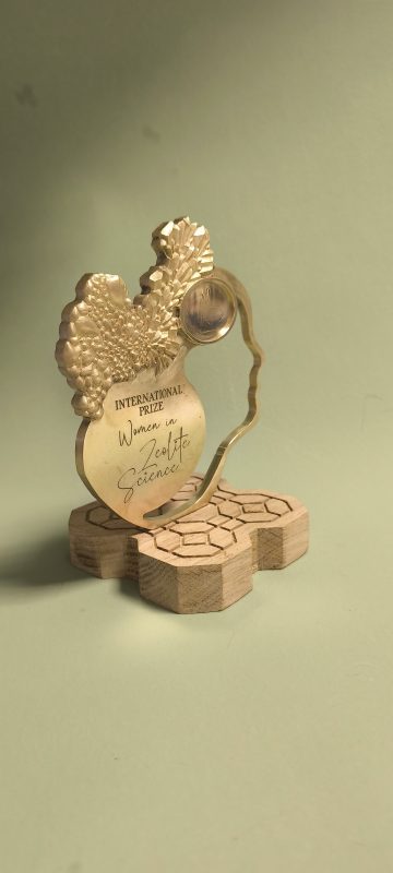 Ici, la création du 1er trophée « women in Zeolite science », qui sera remis en Chine en Juillet 2025, lors du 21eme congrès international de la recherche sur la Zéolite, organisé et accueilli par l’université de Jilin en Chine. Ce projet a été suivi par le CNRS de Caen par délégation. Le dessin du trophée a été réalisé par Virginie BASSETTI, sculpteur sur cloches. L’atelier a réalisé les propositions de matières, puis réalisé le modelage et la réalisation effective du trophée