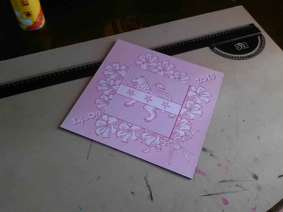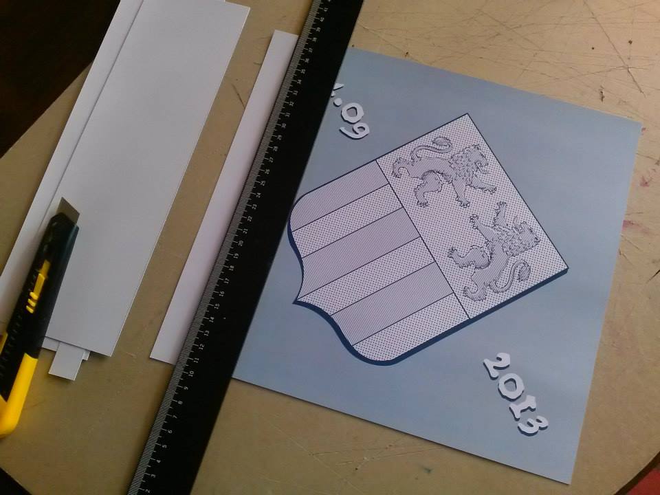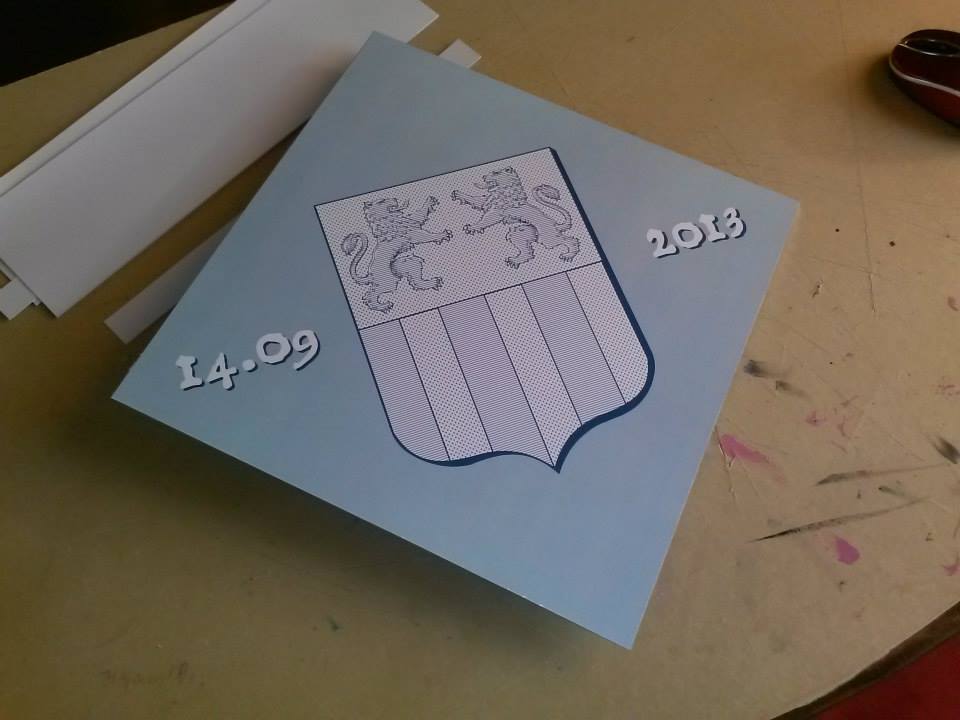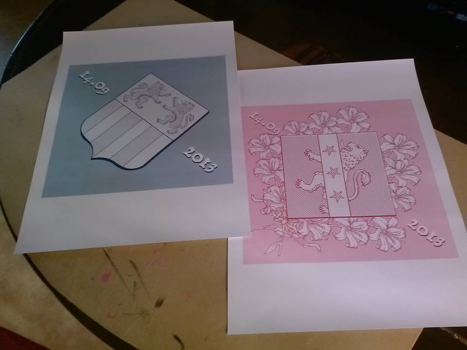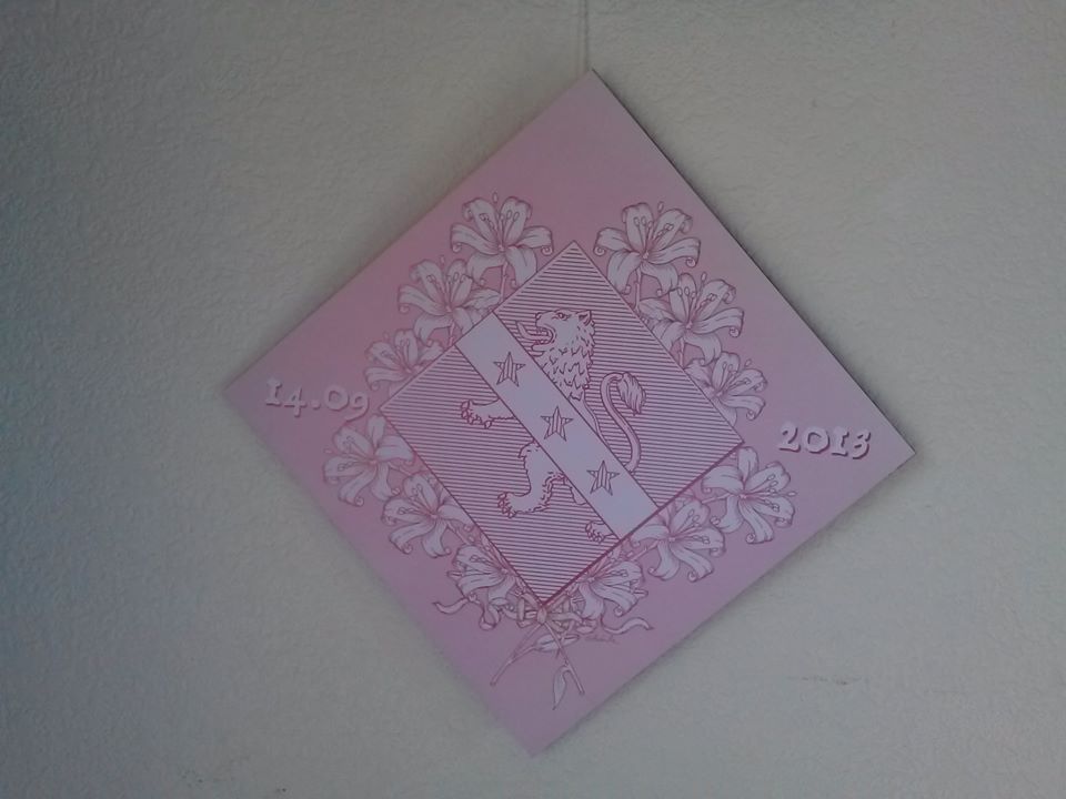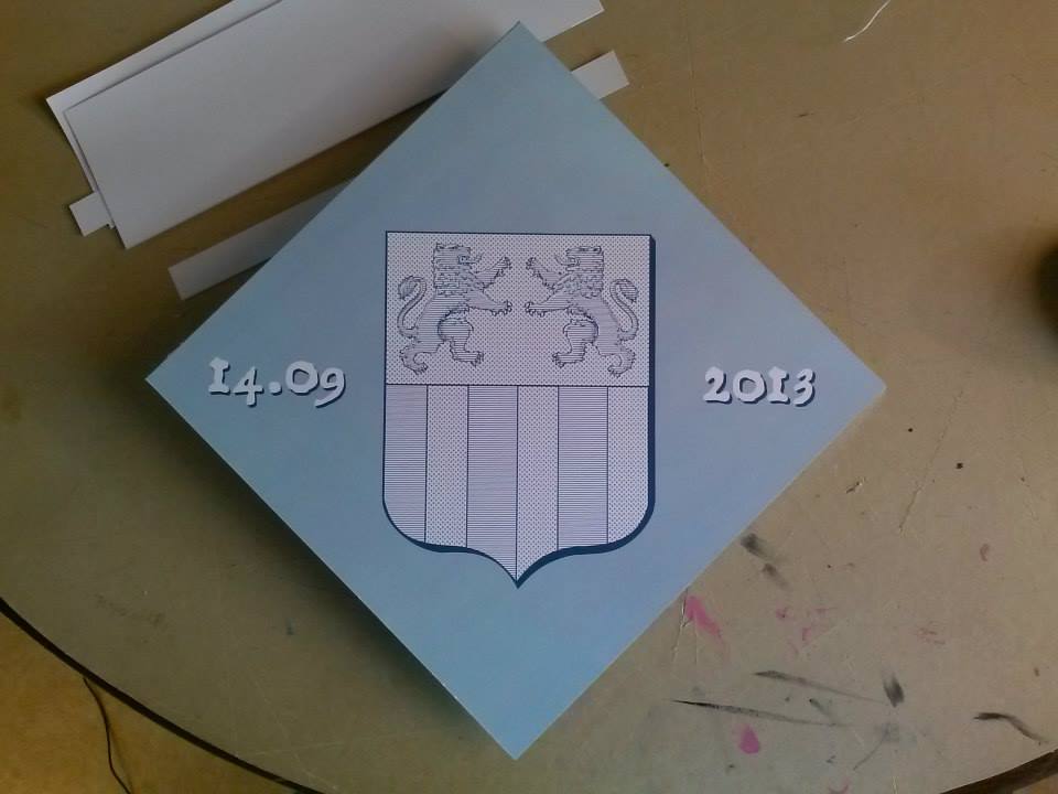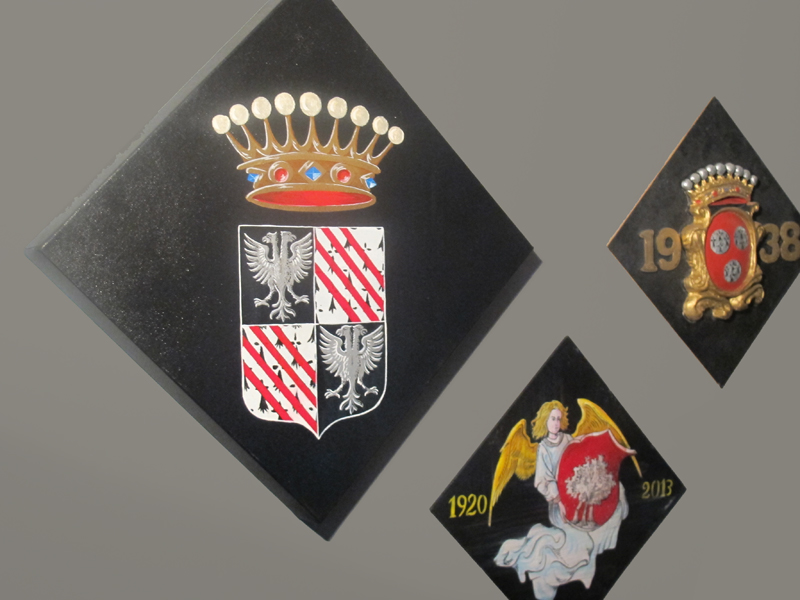 NASCIIT : ne cherchez pas dans les ouvrages anciens, ni sur internet, vous ne trouverez pas, il s’agit d’une « nouveauté », d’une exclusivité de mon atelier … un de mes commanditaires souhaitait faire un décor armorié pour le baptême de sa fille, en discutant, l’idée a germé et voilà le résultat.