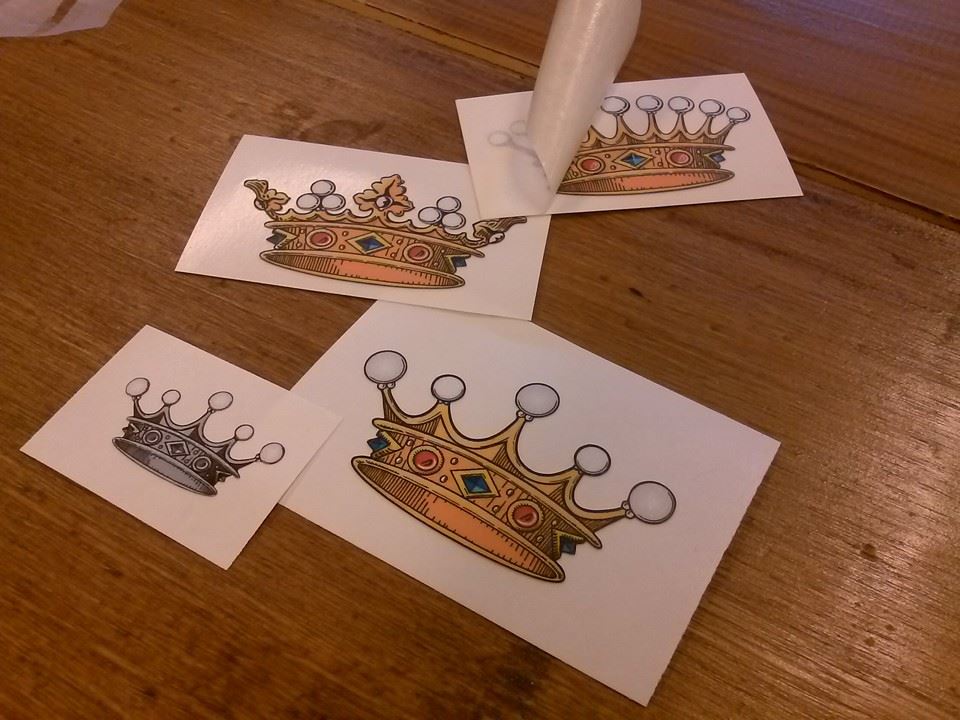 2- Retournez votre autocollant et retirez le papier qui protège la partie adhésive, appelé papier siliconé. en partant du bas de la couronne pour ne pas déchirer les fleurons