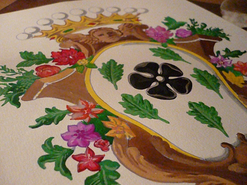 La peinture d’armoiries, traditionnellement, se fait avec des gouaches, avec des tempera à l’œuf, avec la feuille d’or ou de l’or en coquille. Ces techniques ancestrales donnent à vos armoiries tout le lustre qui les mettront en valeur et leur permettront de passer le temps, de traverser les siècles en gardant leur éclat …