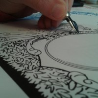 NON ! chaque dessin est unique, et le mode opératoire est systématiquement le suivant : chaque élément est dessiné indépendamment, d’abord au crayon, rapidement, pour prendre les formes, les volumes qui lui seront donnés pour « remplir » l’écu. Puis je retravaille le dessin plus finement, pour me donner un aperçu plus précis. Puis enfin, lorsque le modèle que j’ai conçu me convient, je le réalise à la plume avec de l’encre de chine. Ce dessin sera assemblé informatiquement et livré sur un support dématérialisé, d’où l’appellation. Ce procédé va permettre de garder le côté main indispensable, non figé, que l’on retrouve dans les dessins gravés entre le 17ème et le 19ème siècle.